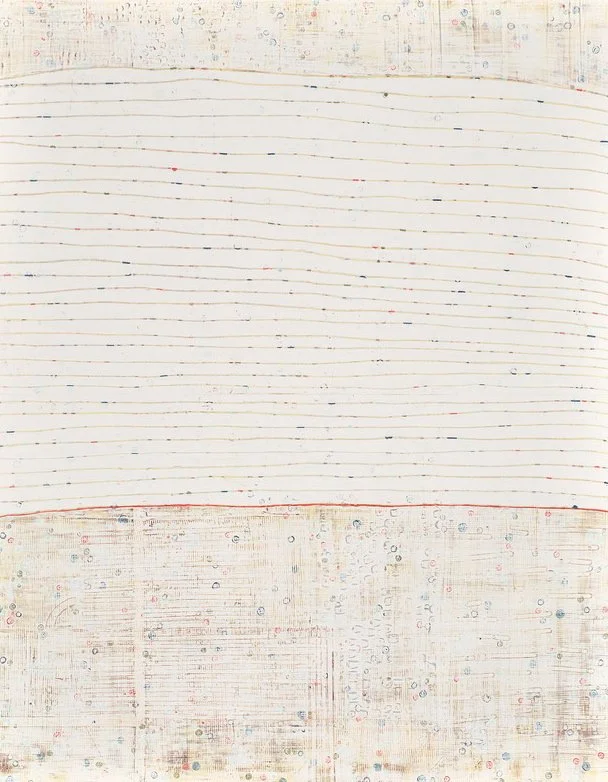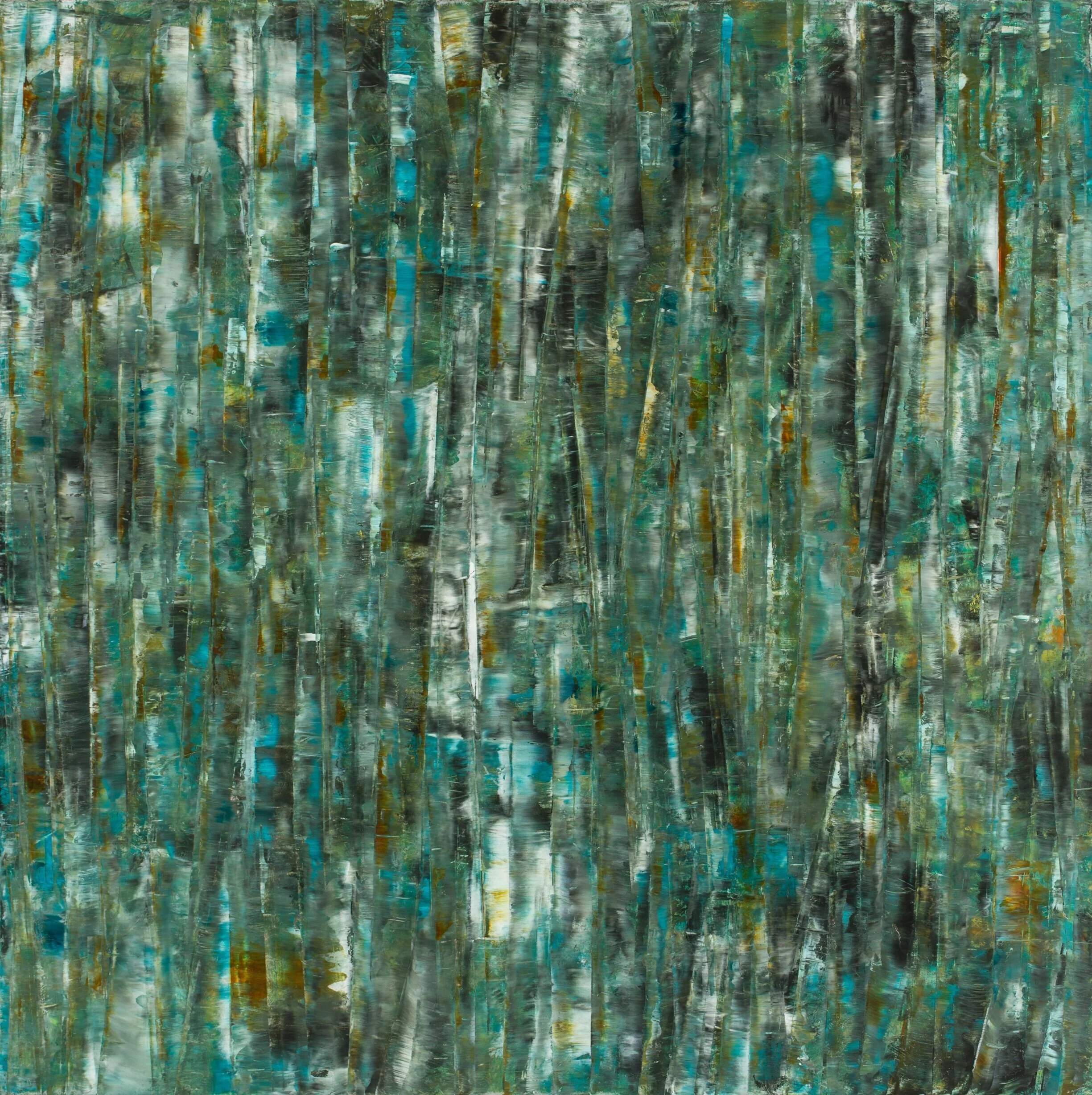 Abstract paintings that weave found materials, layered surfaces, and experimental mark-making to explore diverse landscapes—both external and within.
