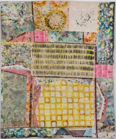 Pandemic-era abstractions blend resilience, solitude, and renewal into textured, mixed media compositions, with textile-inspired layers, subtle color-blocking, and emotive rhythm reflecting this contemporary abstract artwork.